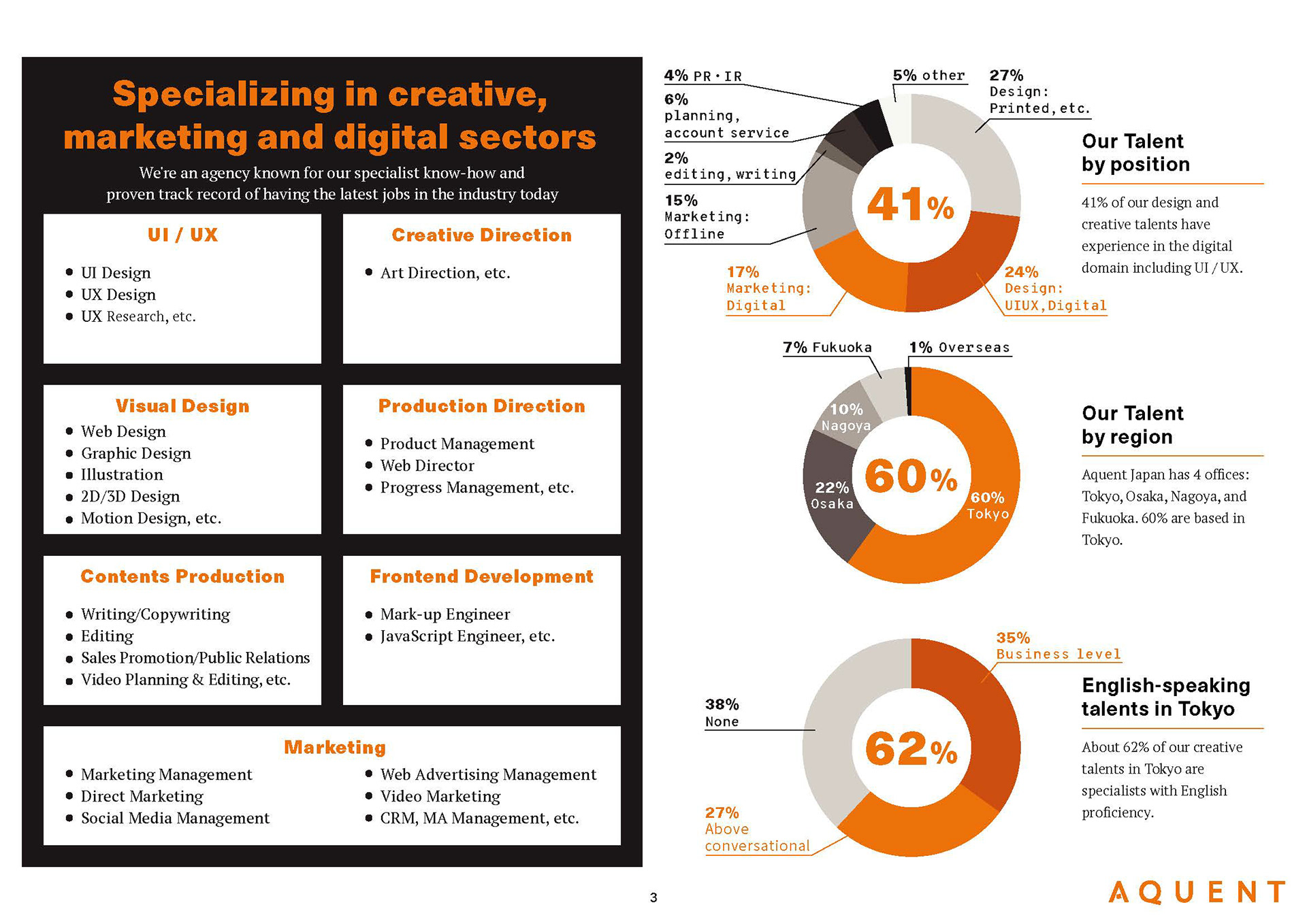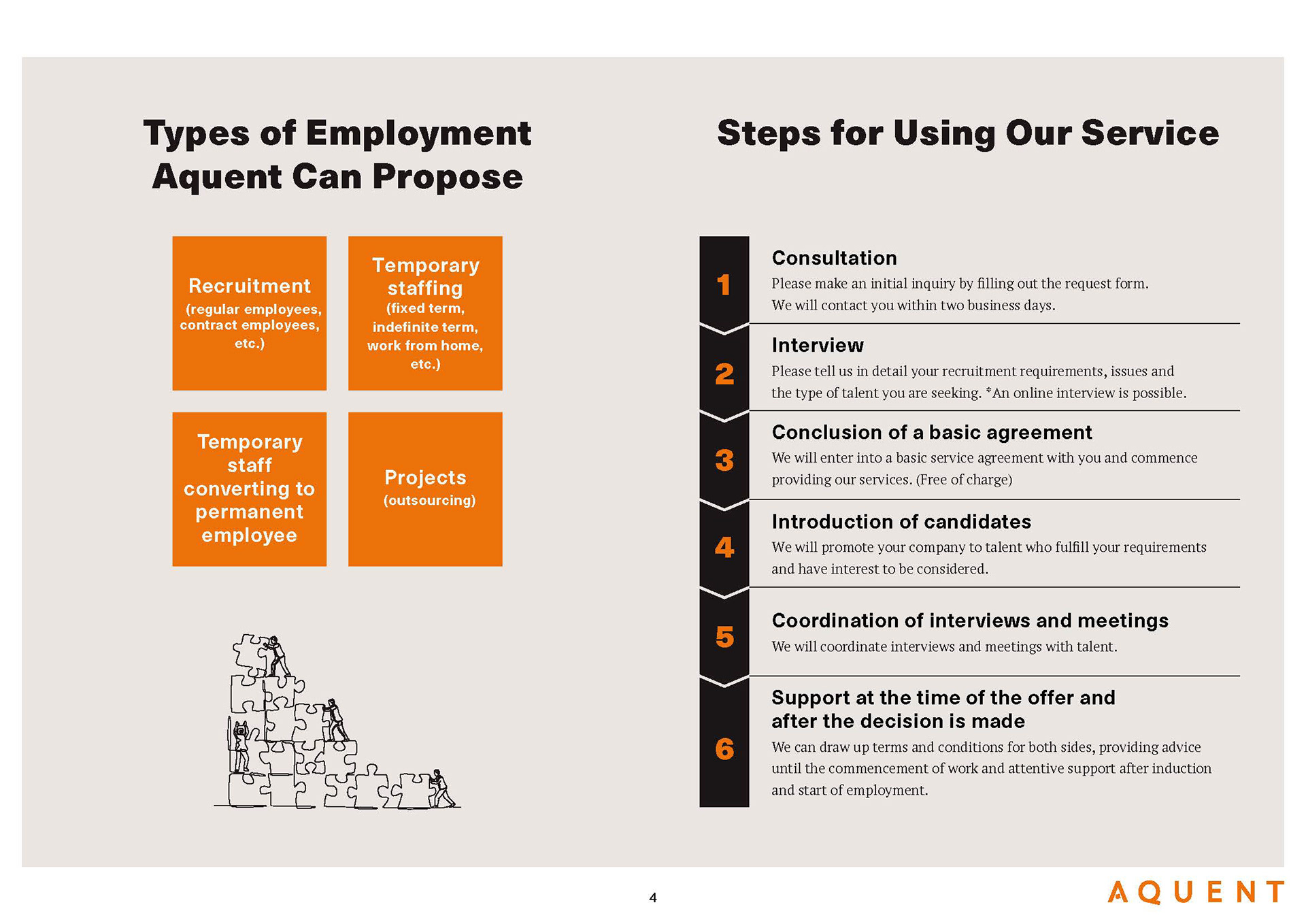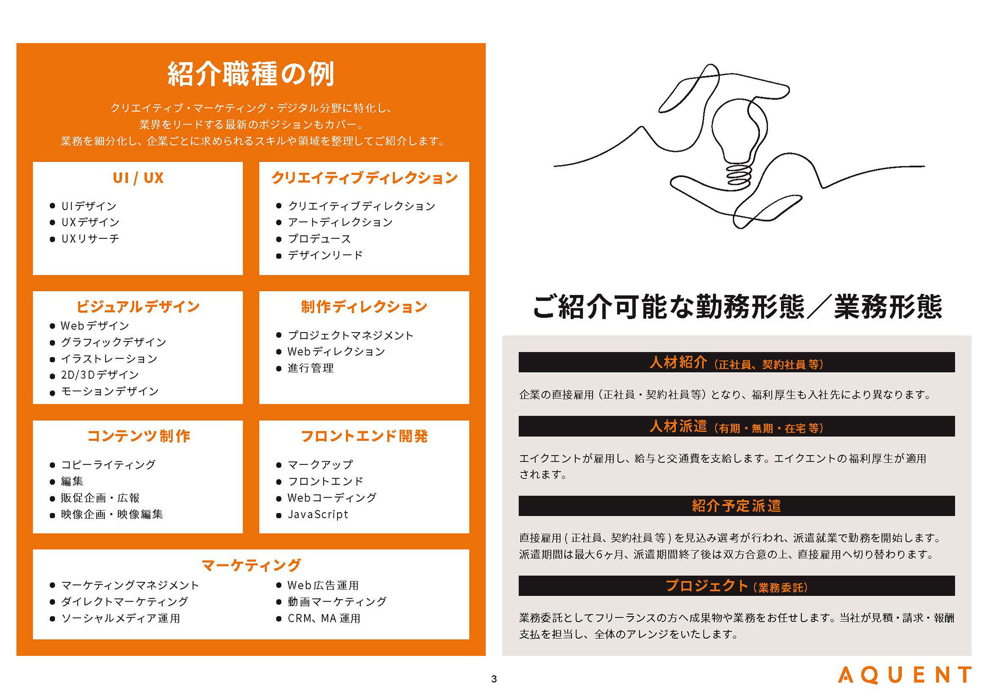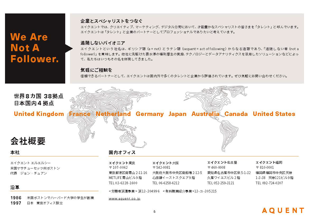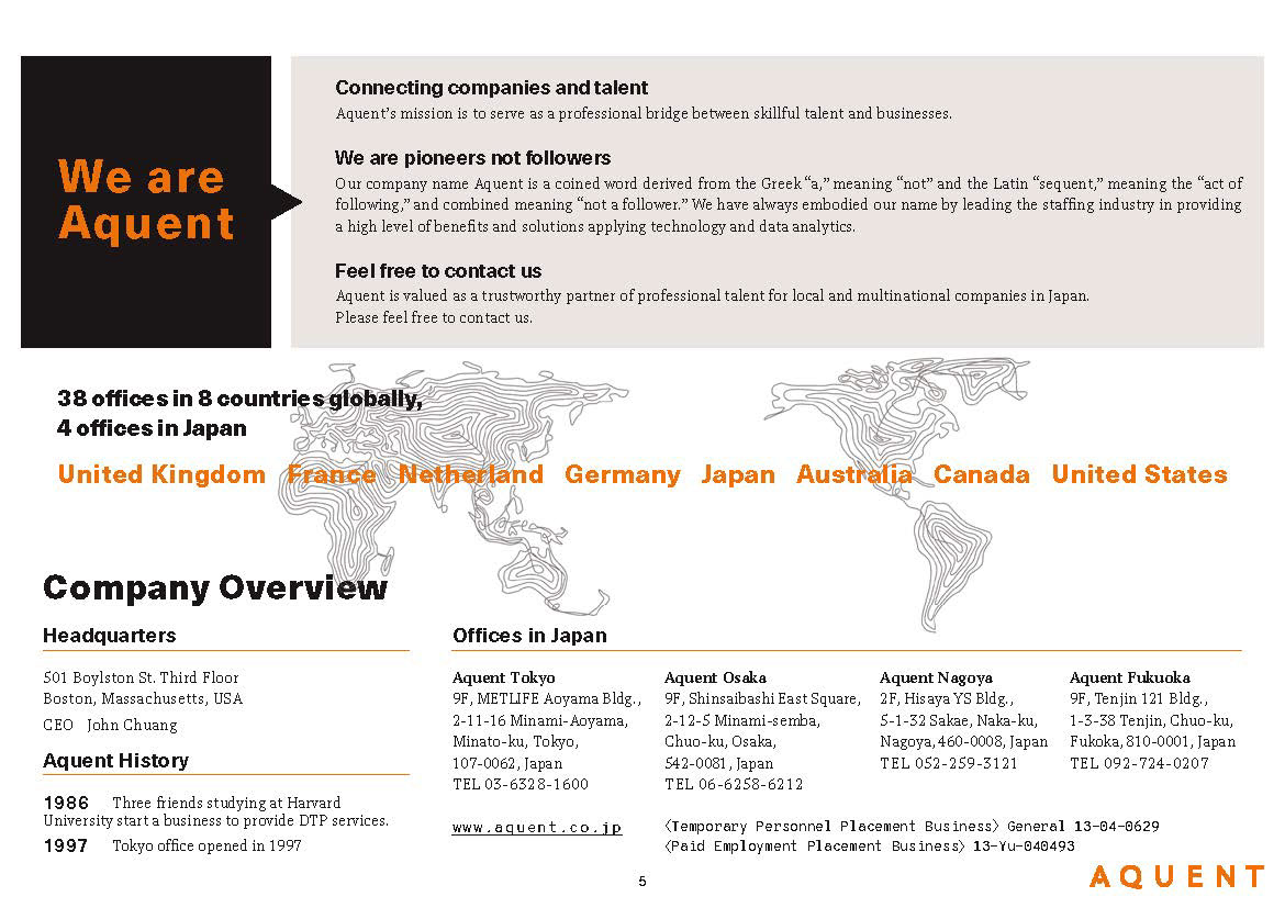 A recruitment agency, AQUENT's company brochure design in Japanese & English.