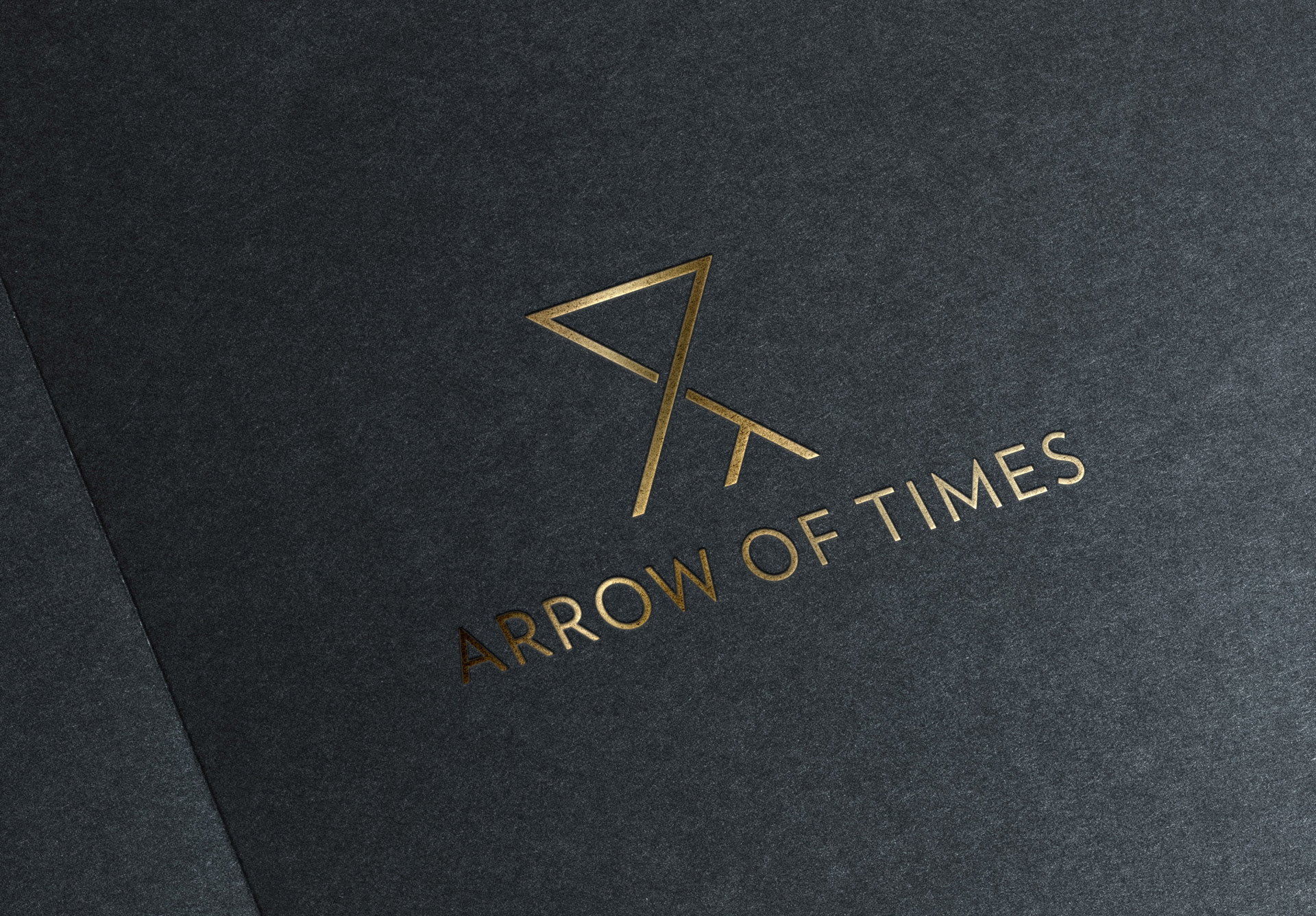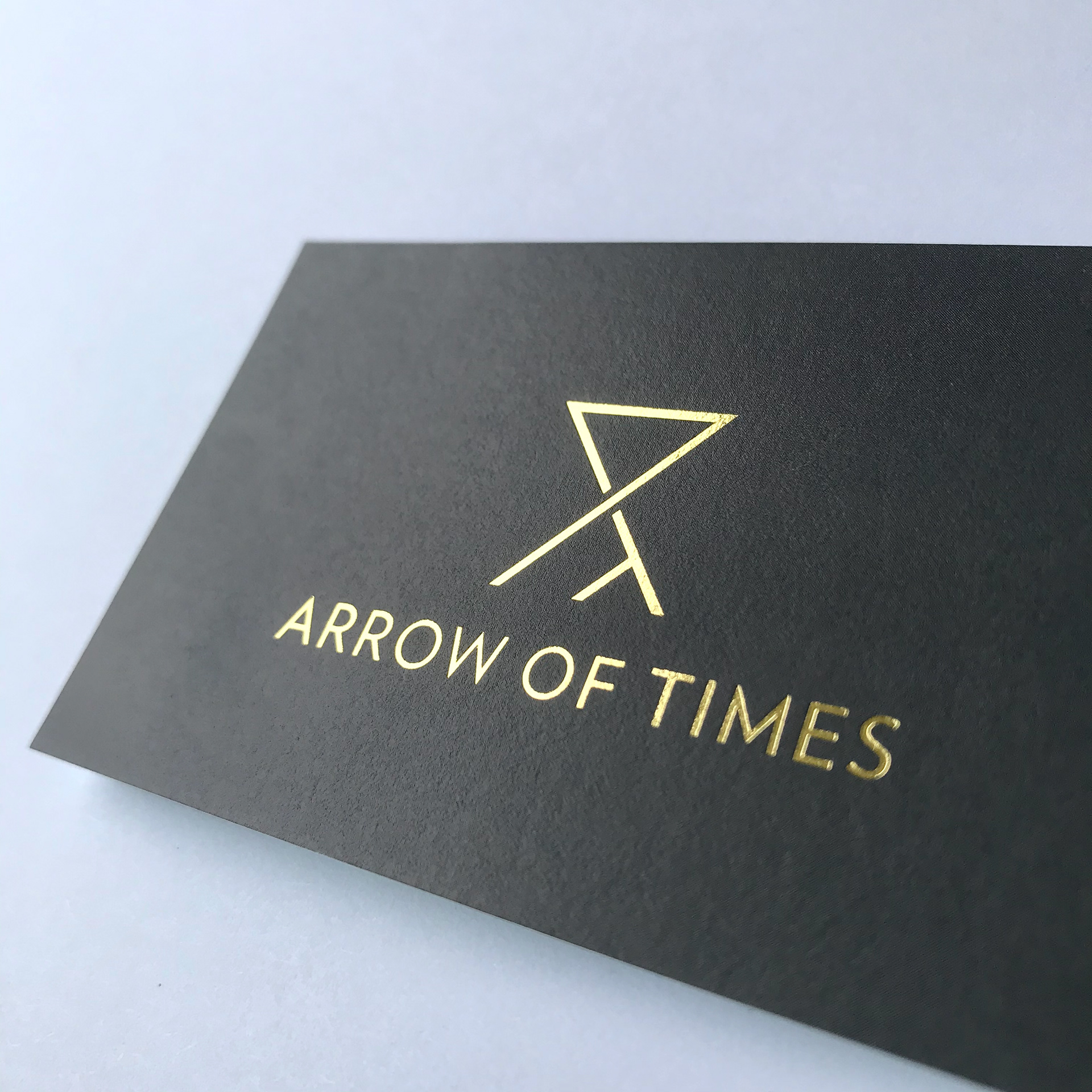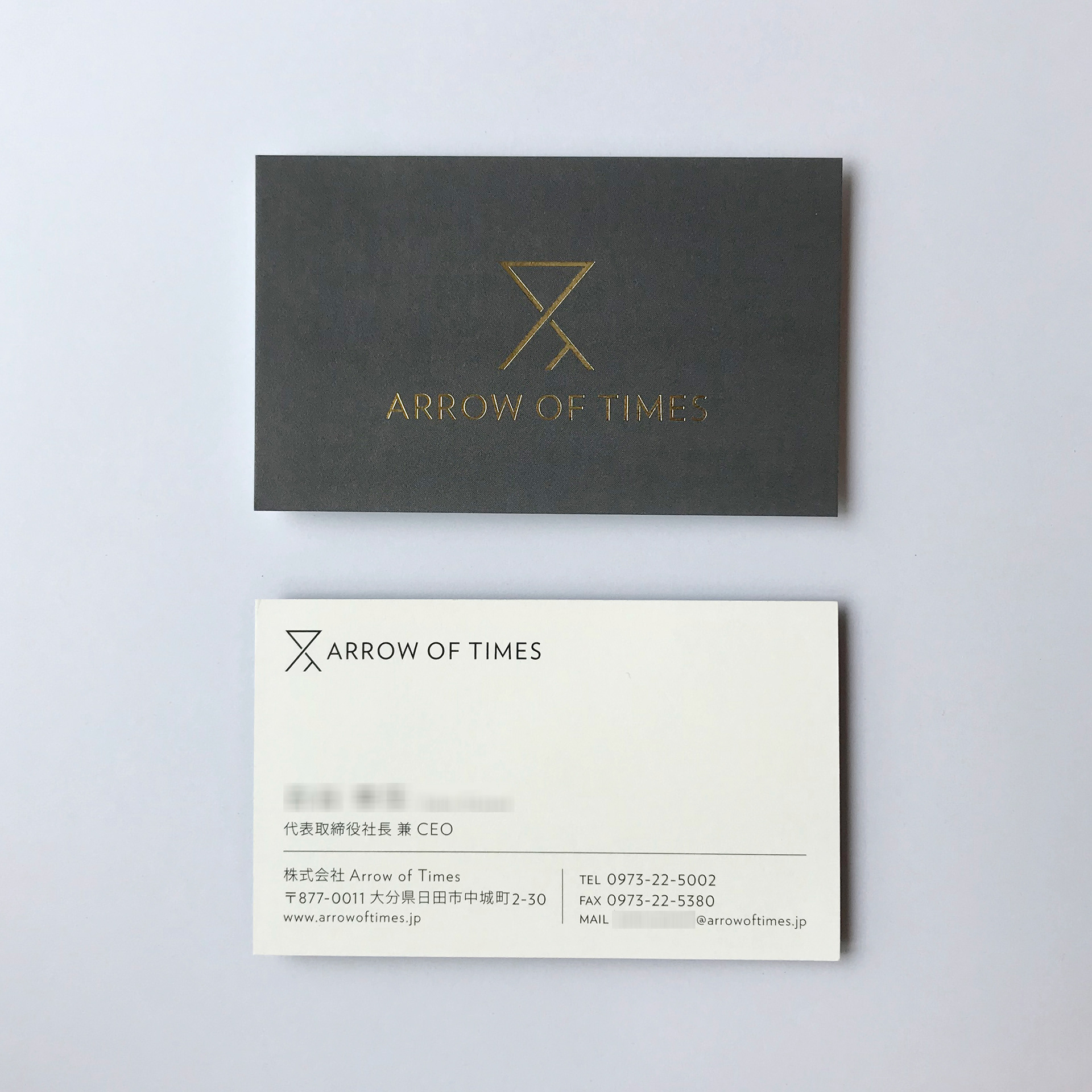 Logo design and Business card design for Arrow of Times in Japan. 頭文字のAとTで砂時計と右上に伸びる矢を表現している。www.arrowoftimes.jp