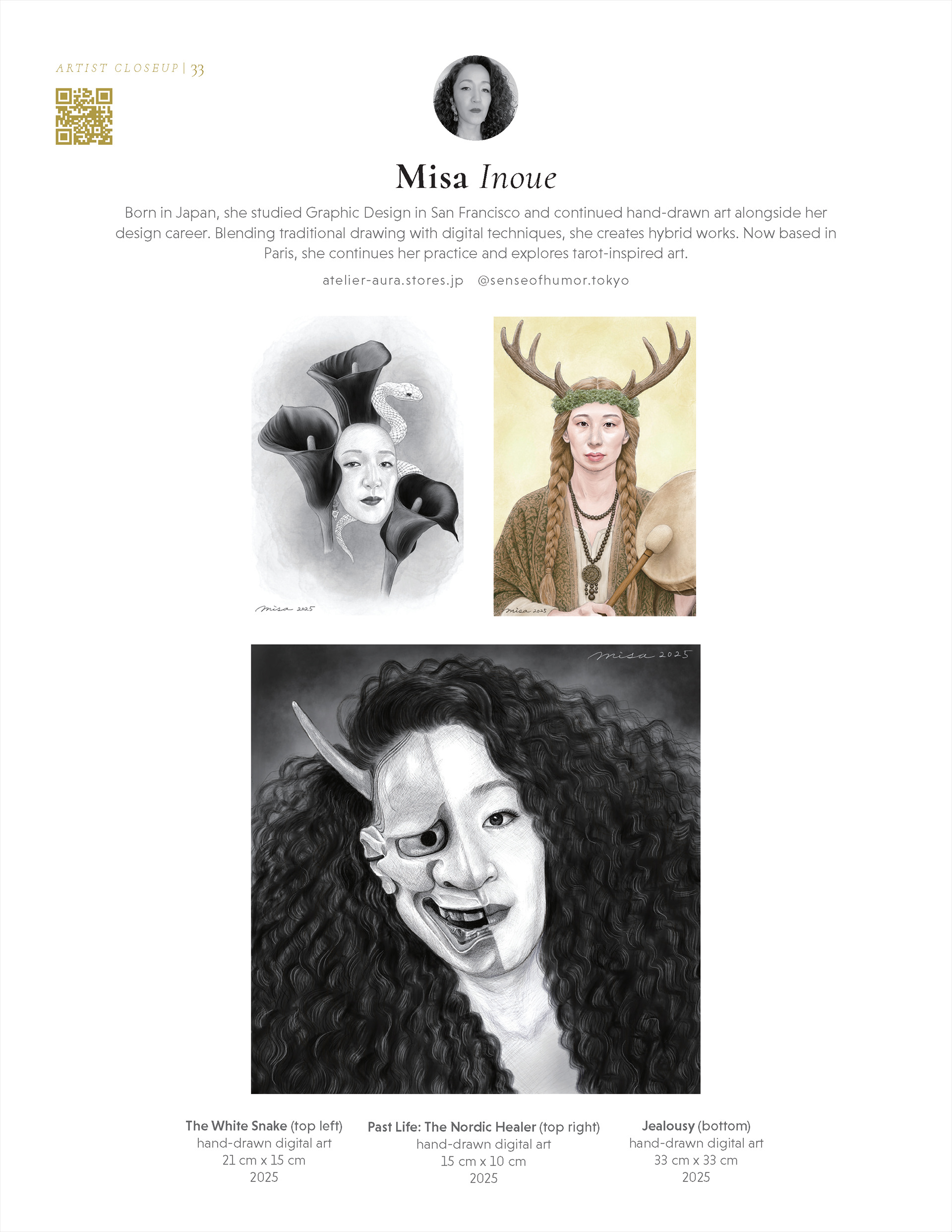 Selected for exhibitions in Paris, London, and Lisbon (2025–2026). Featured in European art magazines, Visual Art Journal #44 & Artist Closeup Magazine #39.
