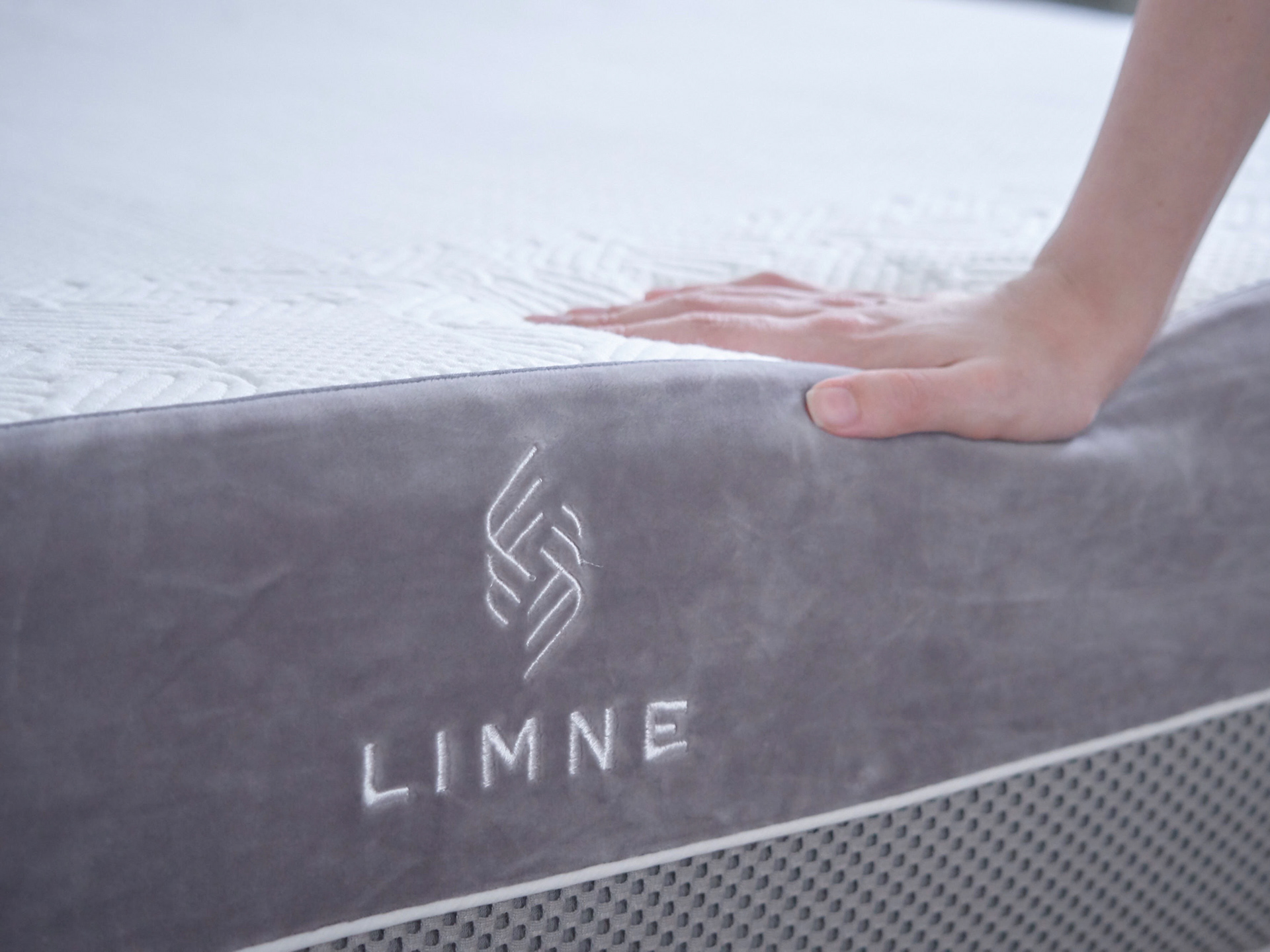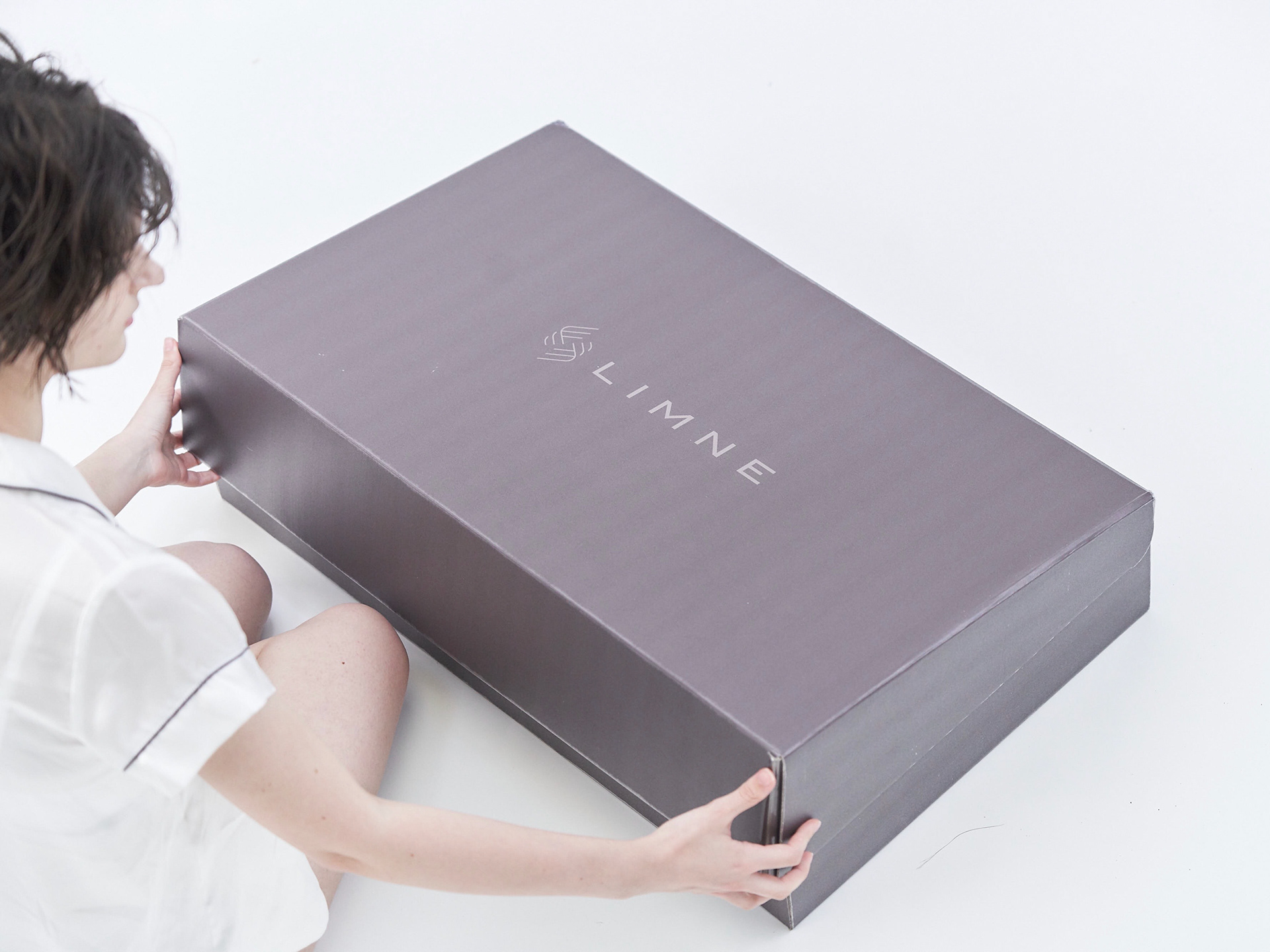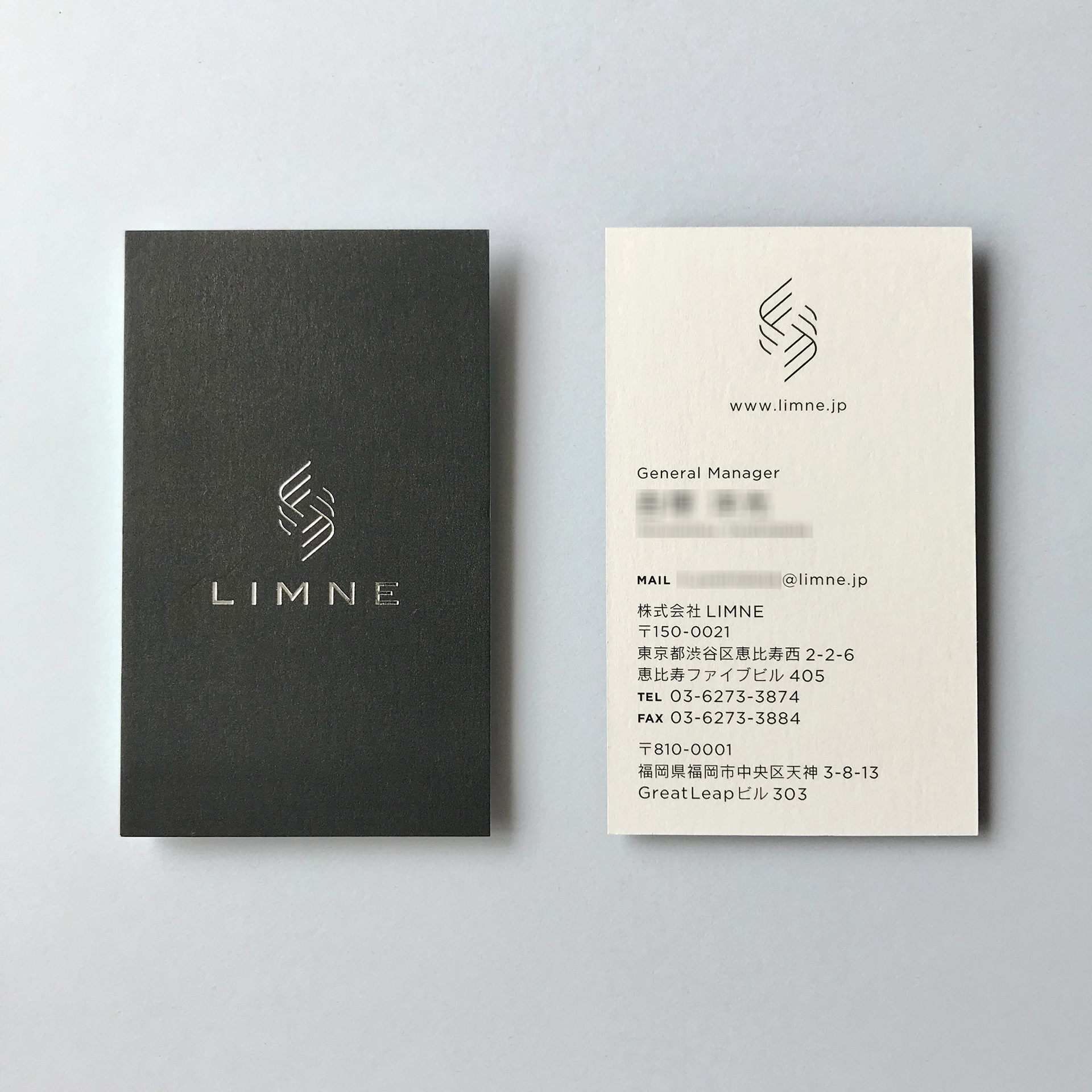 Logo and Business card design for a Japanese bedding brand, LIMNE. シンボルマークは、眠りの神ヒュプノスの翼と、脳をモチーフにしている。